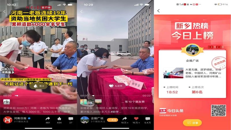 ▲堅(jiān)持捐資助學(xué)大會(huì)不間斷,疫情并沒(méi)有阻擋我們愛(ài)心的傳遞,更加篤定我們對(duì)貧困大學(xué)生持續(xù)的關(guān)愛(ài)。“讓每個(gè)上不起學(xué)的寒門(mén)學(xué)子,都能圓夢(mèng)大學(xué)。”崔培軍書(shū)記的深情夙愿,烙印在每一屆受資助貧困大學(xué)生的心田。